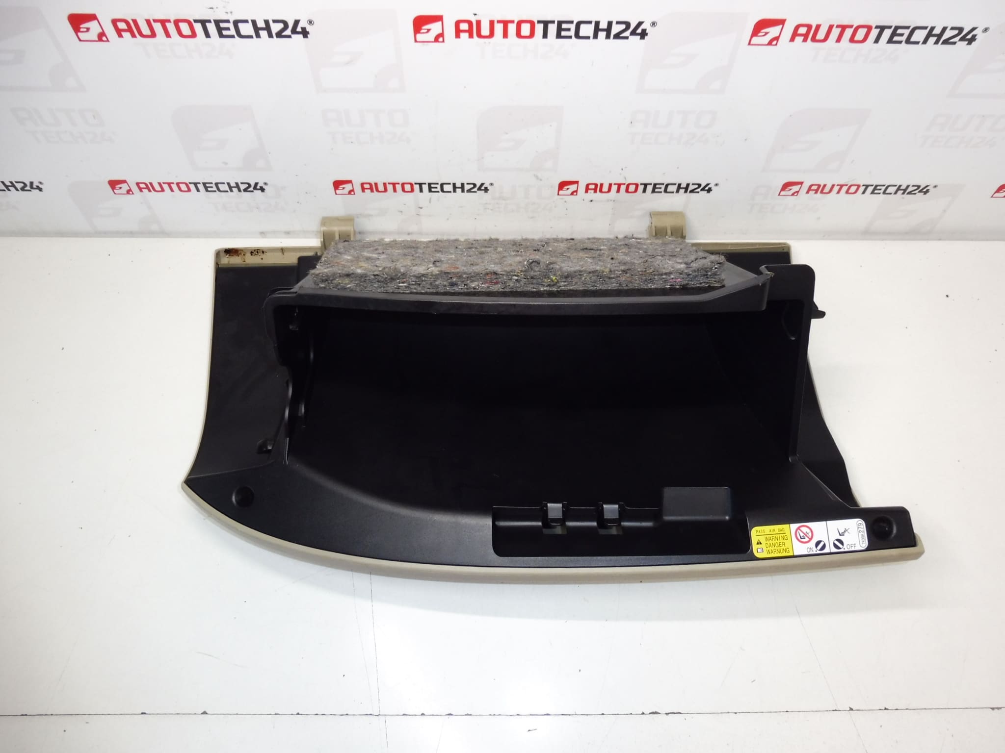 Party box (GLOVE Box) para Citroën C -Crosser y Peugeot 4007 en color beige (tono 0002). Es una pieza usada diseñada para sustituir el salpicadero por compartimento dañado o desgastado. Gracias a la forma exacta y al montaje original, todo encaja y encaja sin modificaciones. Adecuado para solucionar bisagras agrietadas, pestillos no funcionales o superficies dañadas.